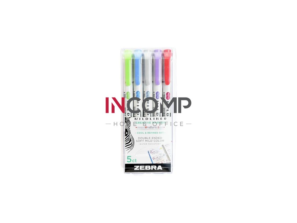 Zvýrazňovač, sada, 1,0/3,5 mm, obojstranný, ZEBRA "Mildliner Cool & Refined", 5 farieb
