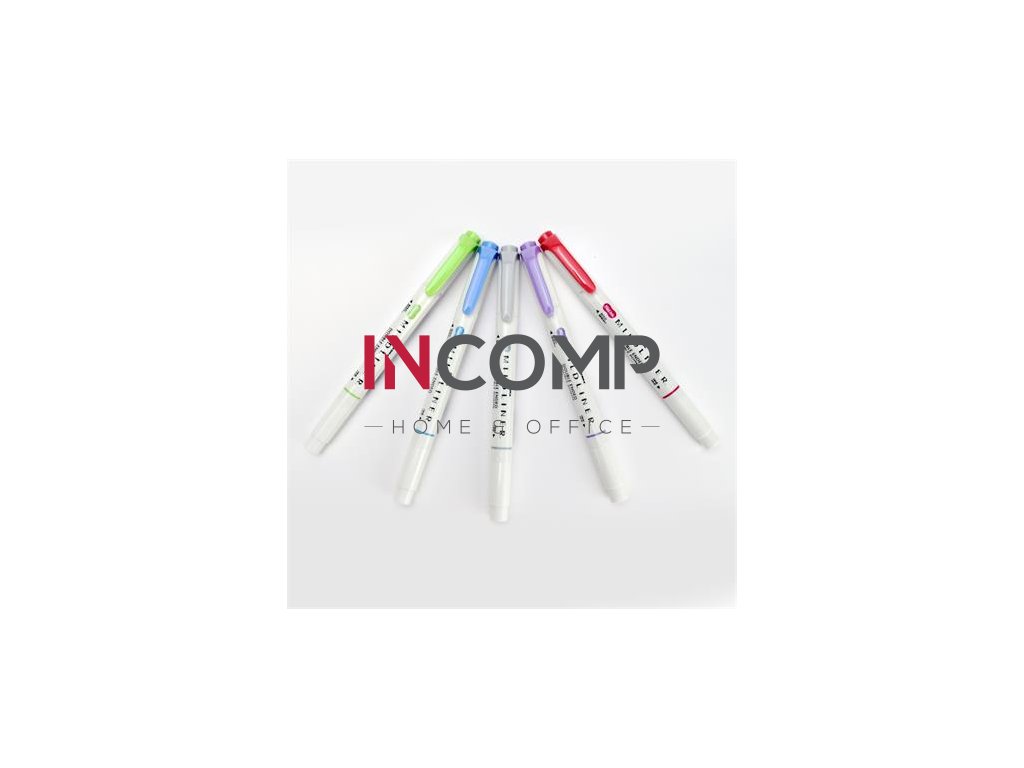 Obojstranný zvýrazňovač so zrezaným a okrúhlym hrotom.