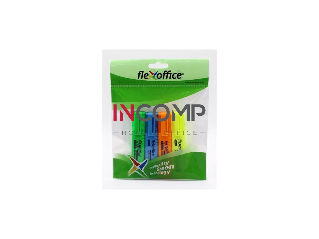 Zvýrazňovač, sada, 1-4 mm, FLEXOFFICE "HL05", 4 rôzne farby