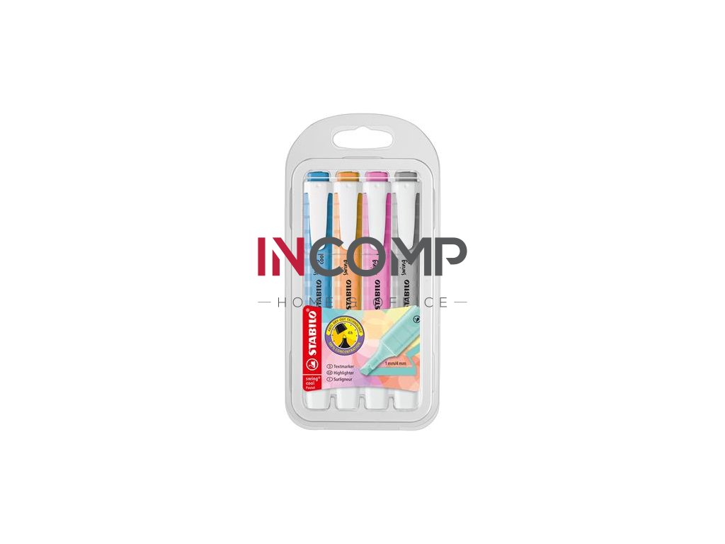 Zvýrazňovač, sada, 1-4 mm, STABILO "Swing cool Pastel", 4 rôzne farby