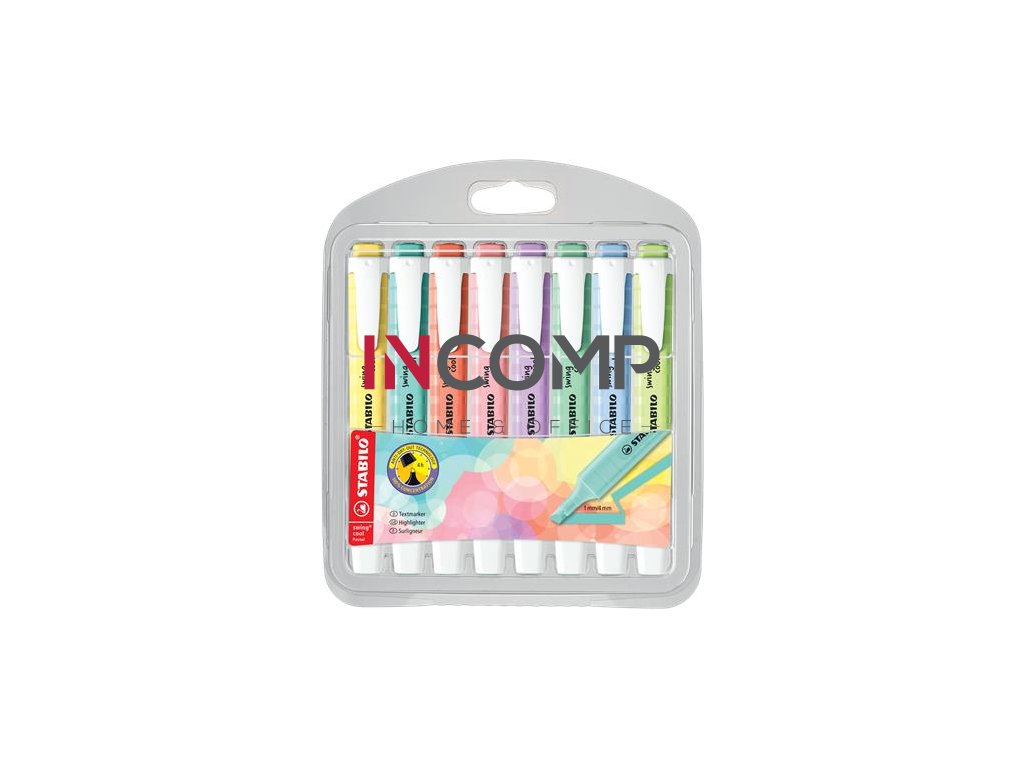 Zvýrazňovač, sada, 1-4 mm, STABILO "Swing Cool Pastel", 8 rôznych farieb