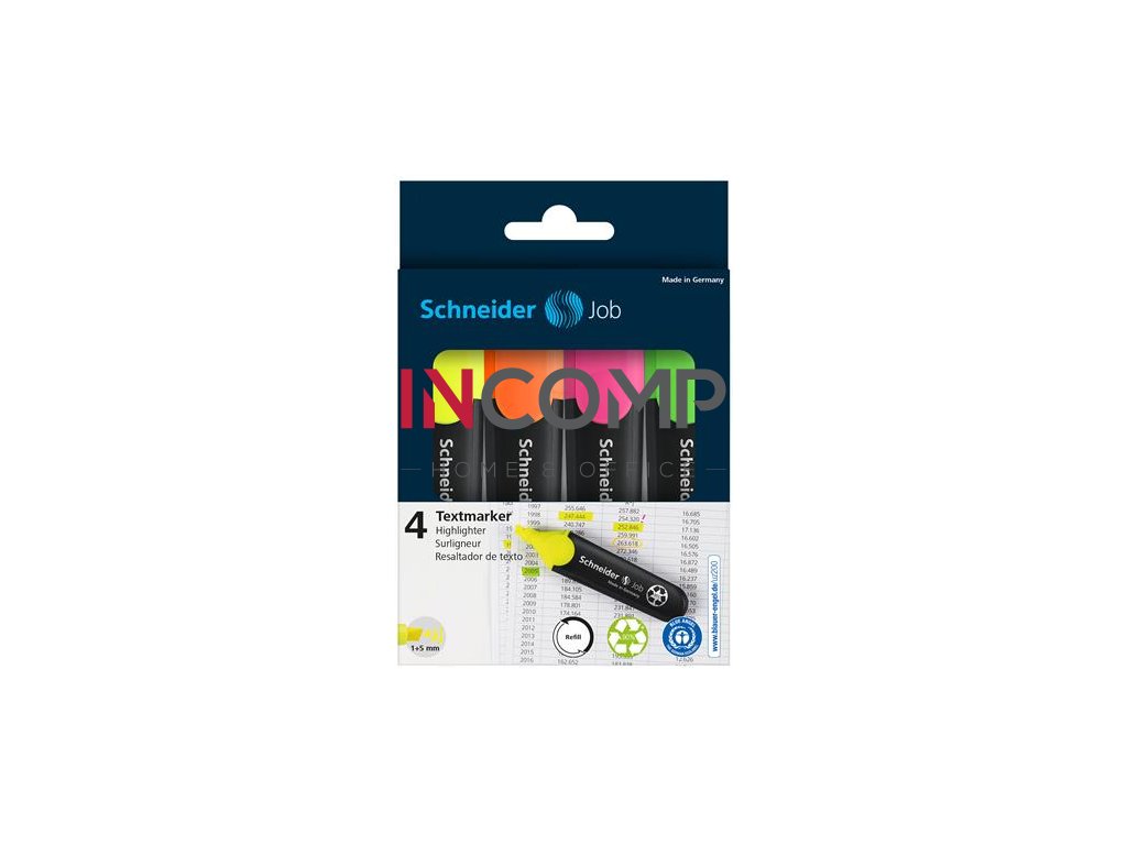 Zvýrazňovač, sada, 1-5 mm, SCHNEIDER "Job 150", 4 rôzne farby