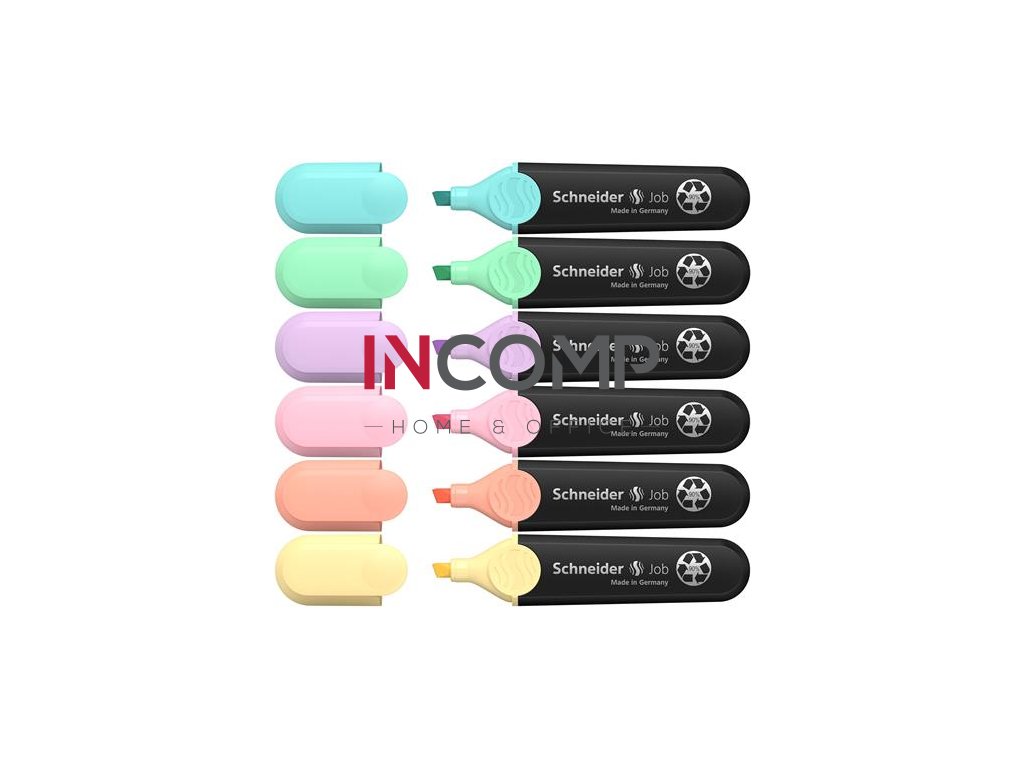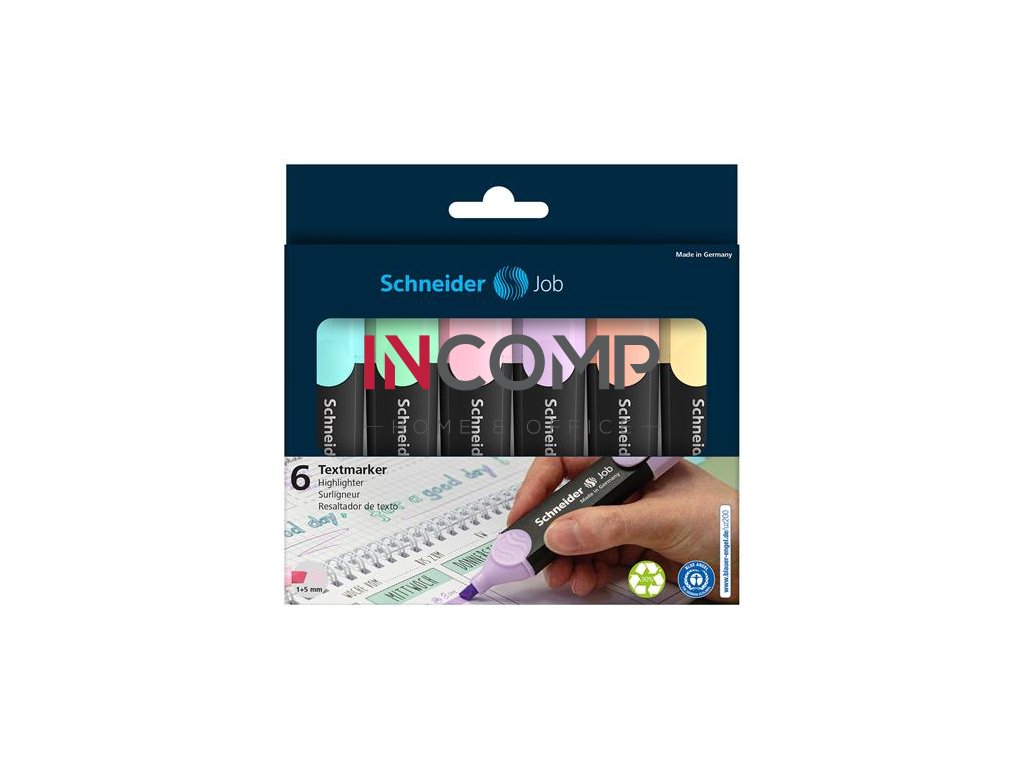 Zvýrazňovač, sada, 1-5 mm, SCHNEIDER "Job Pastel", 6 rôznych pastelových farieb
